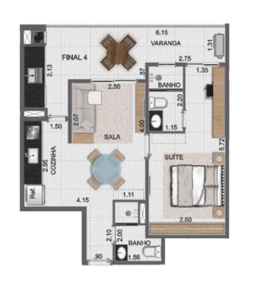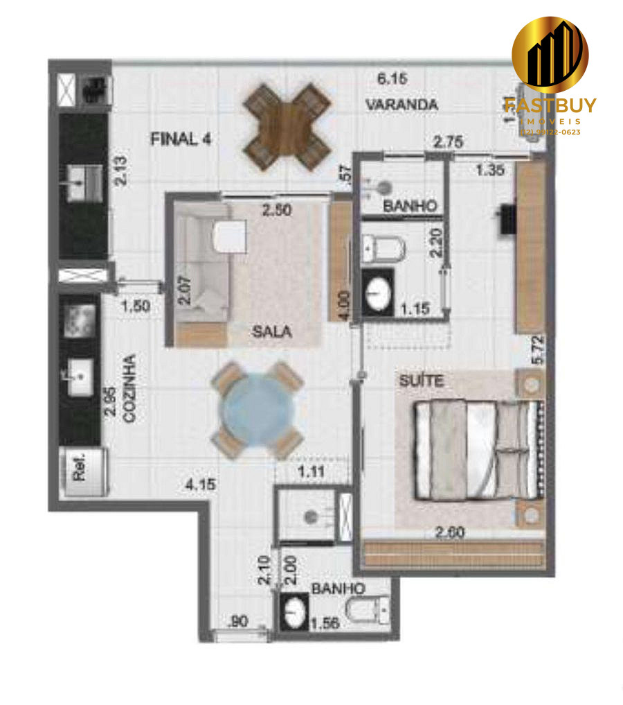 - 1 dormitório com 52,55 m² muito bem distribuídos