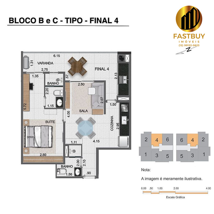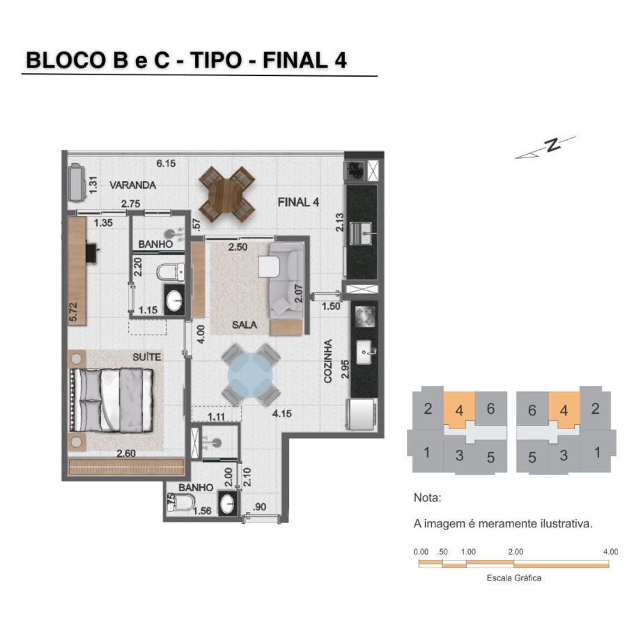 Nº de Unidades por Andar: 4