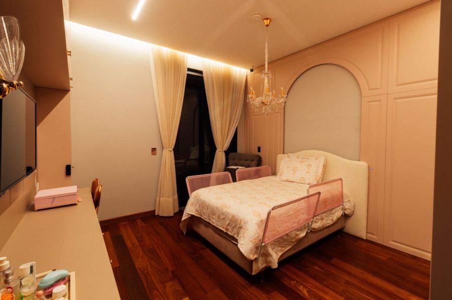 Casa no Condomínio Chácara Serimbura com 800 m² de área construida em 1200 m² de terreno com 6 Dormitórios, 8 banheiros, 6 vagas para carro, sala de estar, santar e tv, cozinha, área de serviço. Dispões de uma área gourmet para encongtro familiar e amigos, Elevador, Energia solar, escritório, ilha e coifa na área da cozinha e área gourmet, dispõe de um lavabo,