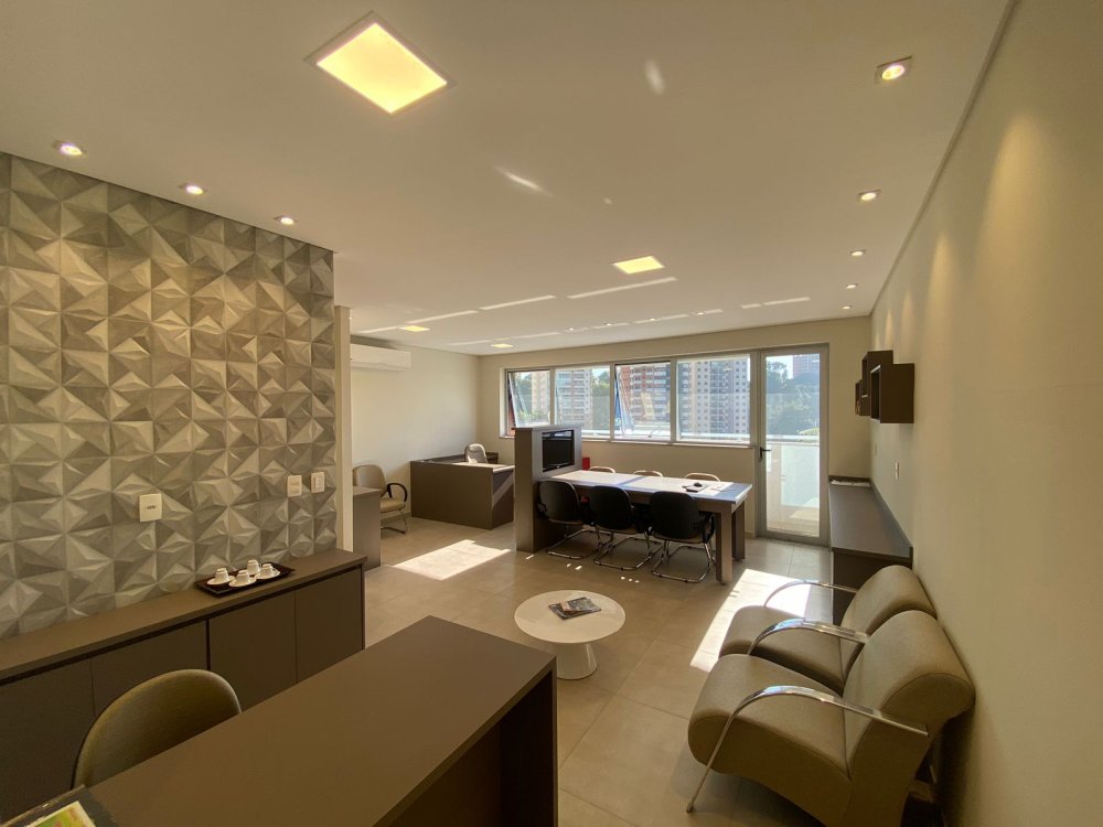Ao entrar, você será recebido por uma atmosfera luminosa, com luz solar inundando o ambiente pela manhã, tornando cada dia de trabalho um verdadeiro prazer. A sala também possui uma copa conveniente já com cafeteira e bebedouro, perfeita para preparar bebidas e lanches, além de um banheiro privativo para sua comodidade.